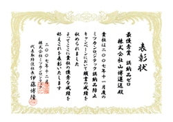 お客様主催の物流品質コンクールで、数々の優秀賞をいただいております。